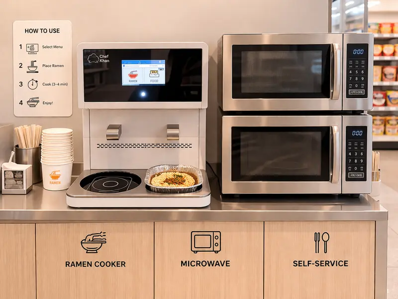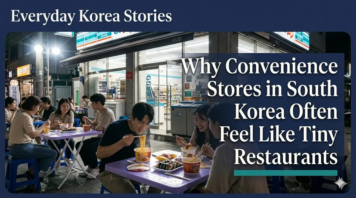 In South Korea, convenience stores have quietly evolved into hybrid spaces — part retail shop, part quick dining spot. Customers don’t just buy food and leave. They heat meals, cook instant noodles, sit down, and eat on the spot.