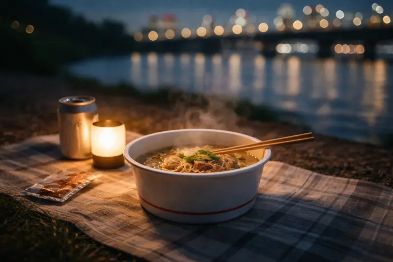 Answer: It’s a genuine local activity. Many Seoul residents visit the river after work or on weekends, and eating ramen there is a familiar, low-effort way to spend time outdoors.