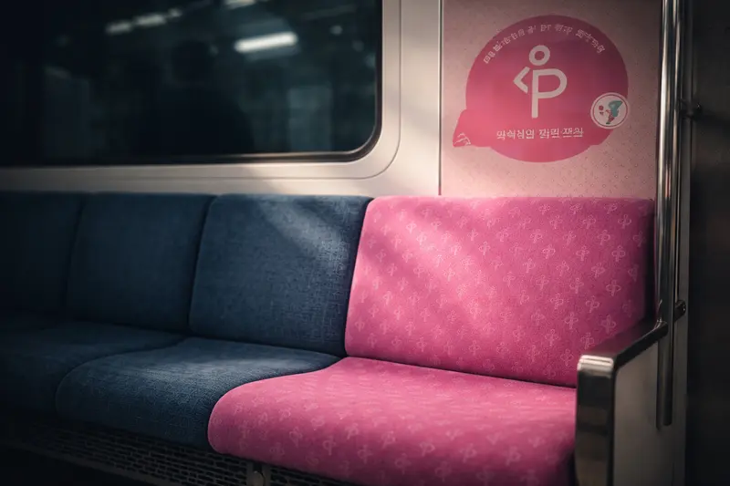 Seoul’s subway system designates specific seats in each train car for pregnant women. These seats are clearly marked, often in pink, with signage explaining their purpose.