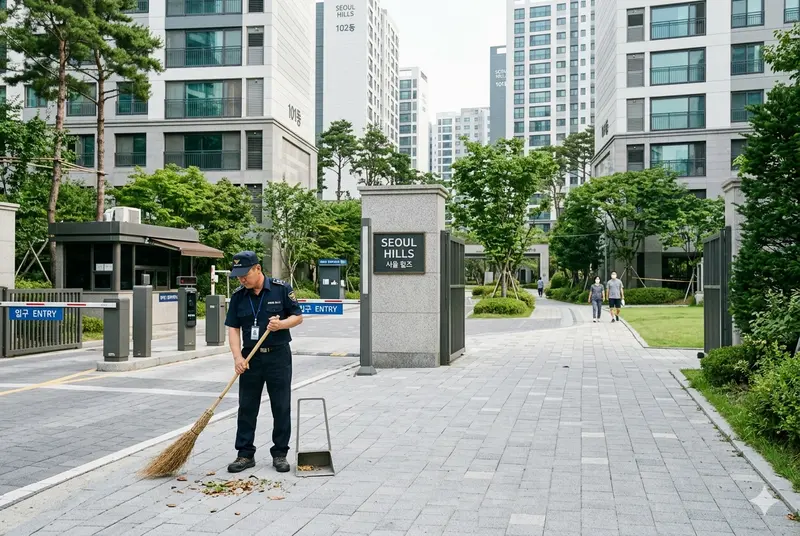 First, Korean apartment complexes tend to function as tightly organized communities rather than isolated buildings. Shared spaces like playgrounds, gardens, and parking areas require constant maintenance.