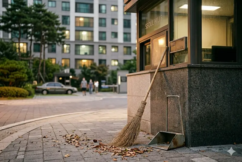 Despite automation and digital security technologies, the presence of human guards remains common in Korean apartment complexes.