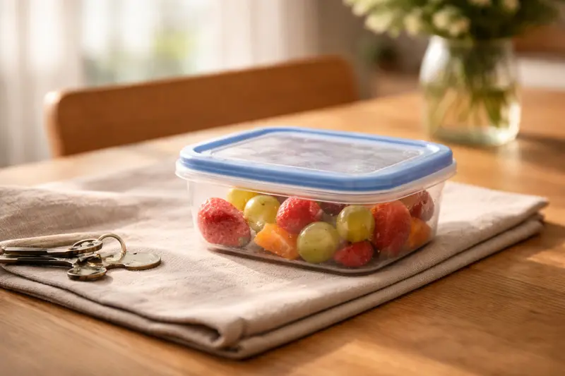 In a quiet apartment hallway, a door opens just slightly. A hand appears holding a small container—inside, a portion of freshly made food. The exchange is brief. A few words, a small nod, and the door closes again.